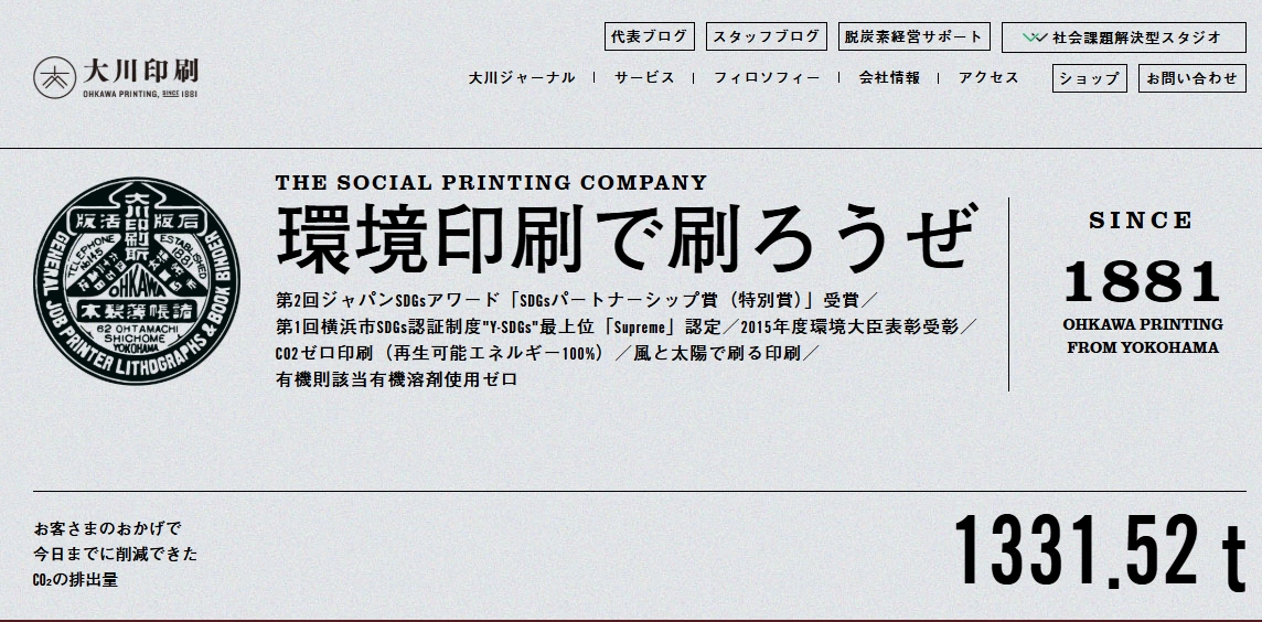 神奈川県の大川印刷は、「環境印刷」を掲げる先進企業です。2019年には国内印刷業界で初めて、自社工場で使用する全ての電力を100%再生可能エネルギーに切り替えました。