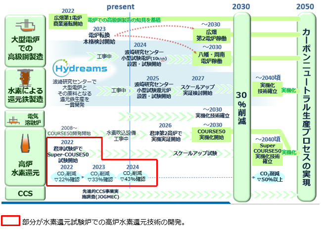 日本製鉄はこれらビジョンにより2030年代の技術確立と2050年の社会実装を目指し、政府支援を受けつつ巨額の投資を継続中です。