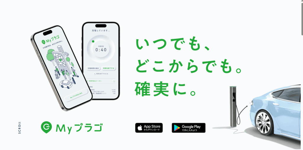 Myプラゴは、EVやPHEV向けに、充電ステーションの検索・予約から充電後の決済、空車通知までをシームレスに行えるアプリです。