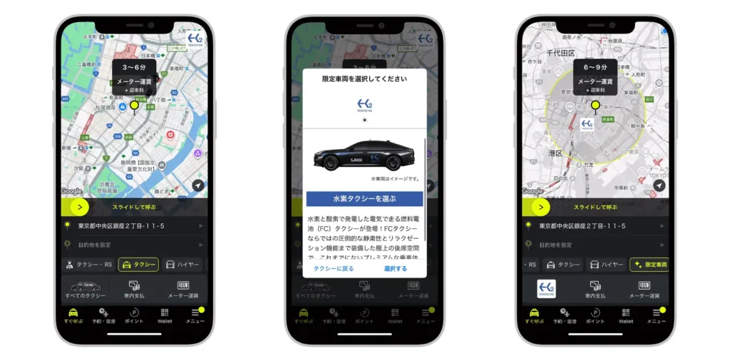 タクシーアプリの「S.RIDE®」が、都内で「水素タクシー」の配車を開始